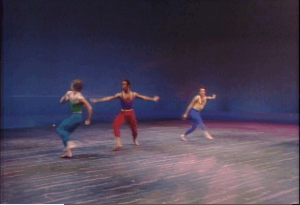 The three main dancers in Trinity, Christian Holder, Dermot Burke, and Gary Chryst, each embodied a different social experience. They represented a spiritual awakening, a sexual revolution, and political defiance, respectively. As such, the choreography sought to convey the fervor of the sixties. Visual cues arise at different points throughout; Chryst, for example, performs a sequence of sharply raised fists, mirroring scenes of protest in the streets. In the words of Christian Holder, “we were encouraged to improvise, to use steps that we used socially at discotheques and things like that, and then [Arpino] would edit it.” (1)
